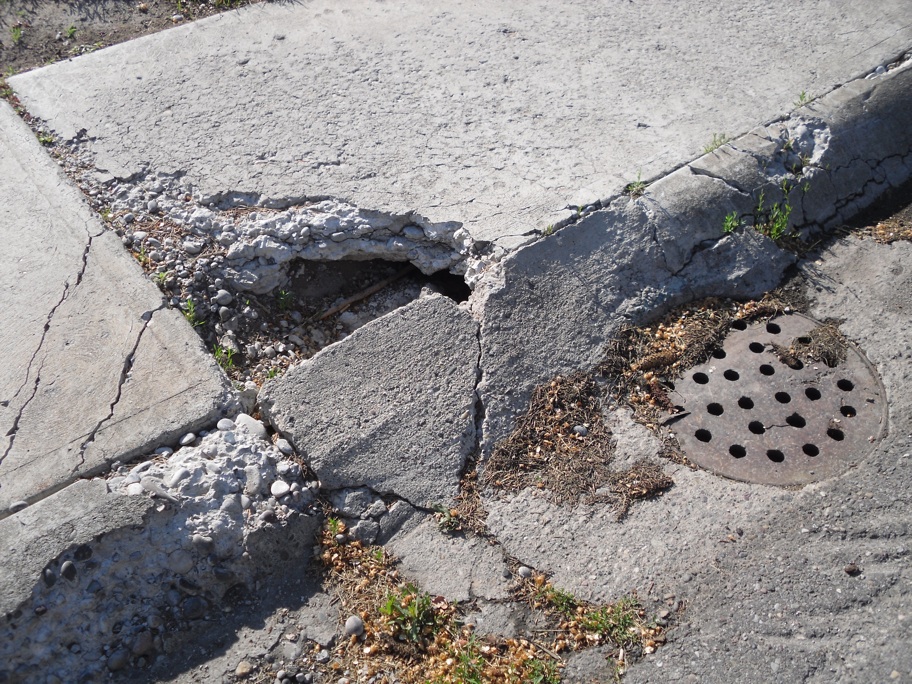 Yeah, the cement is pretty bad!  The hole by the drain is the one that makes me the most nervous.  It's a liability just waiting to happen.  I'm glad it's getting replaced.
